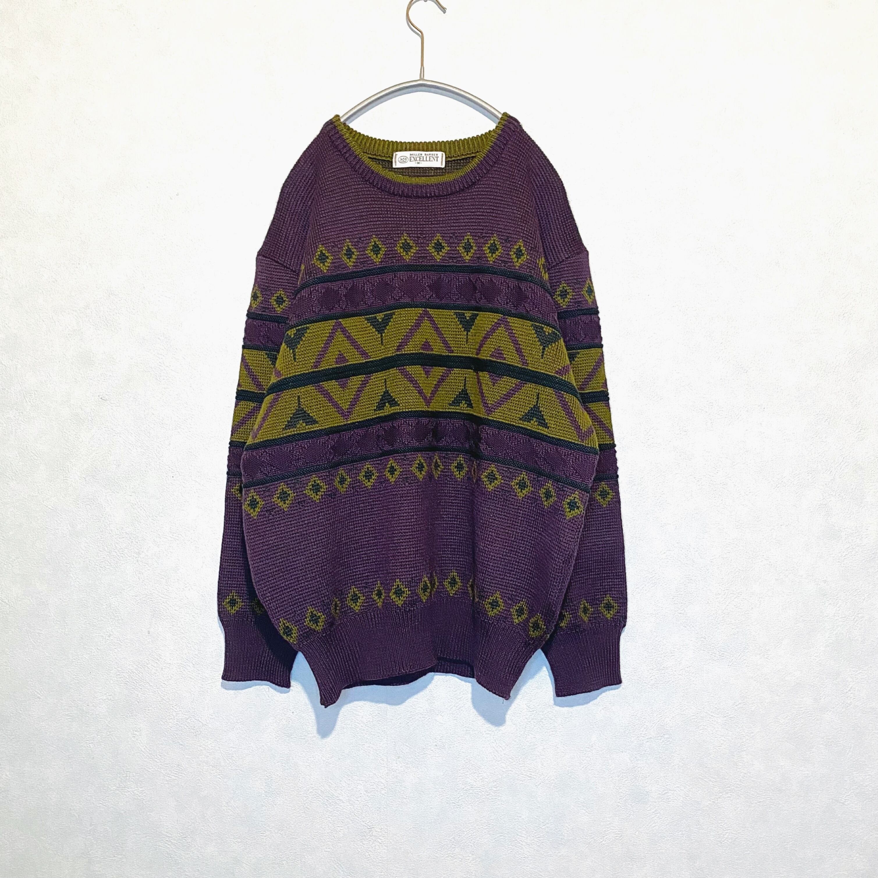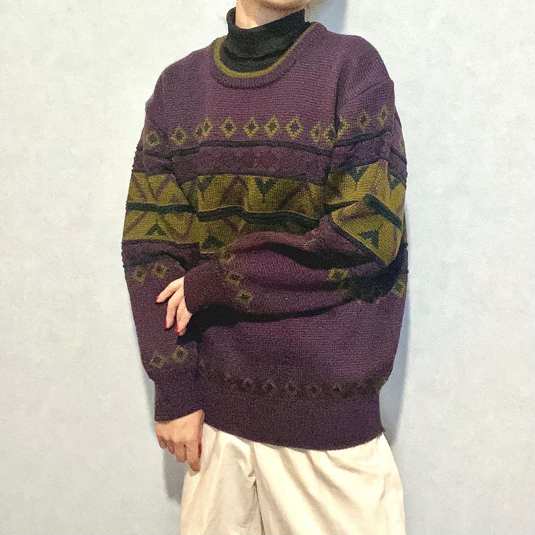 【訳あり】古着 ヴィンテージ レトロ ユニセックス 派手柄 ニット セーター