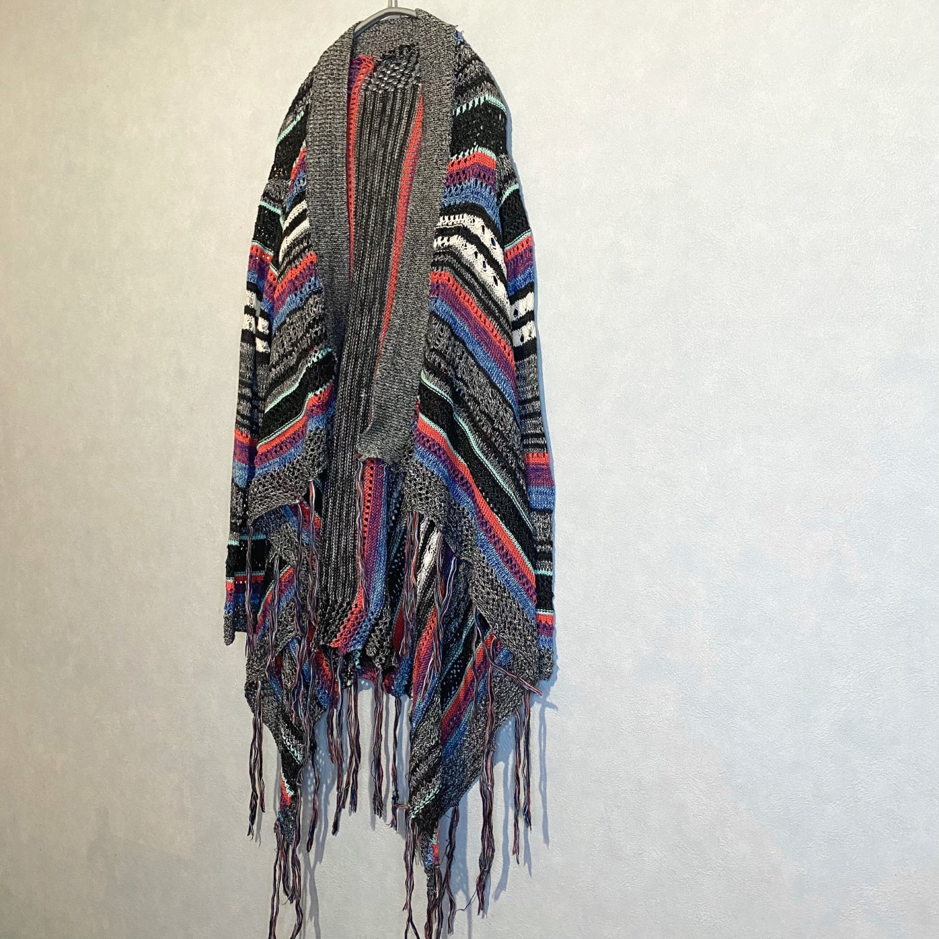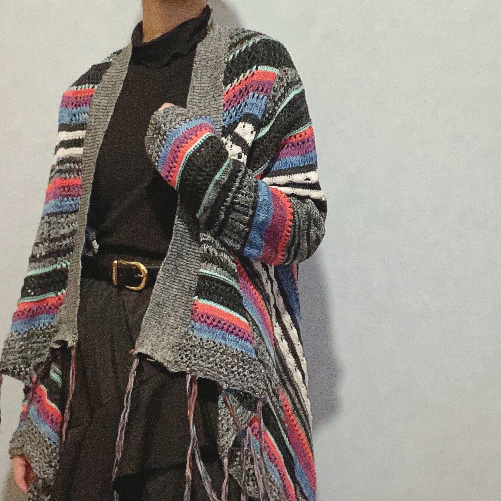 古着 ヴィンテージ レトロ ニット フリンジ 羽織 ロングカーディガン