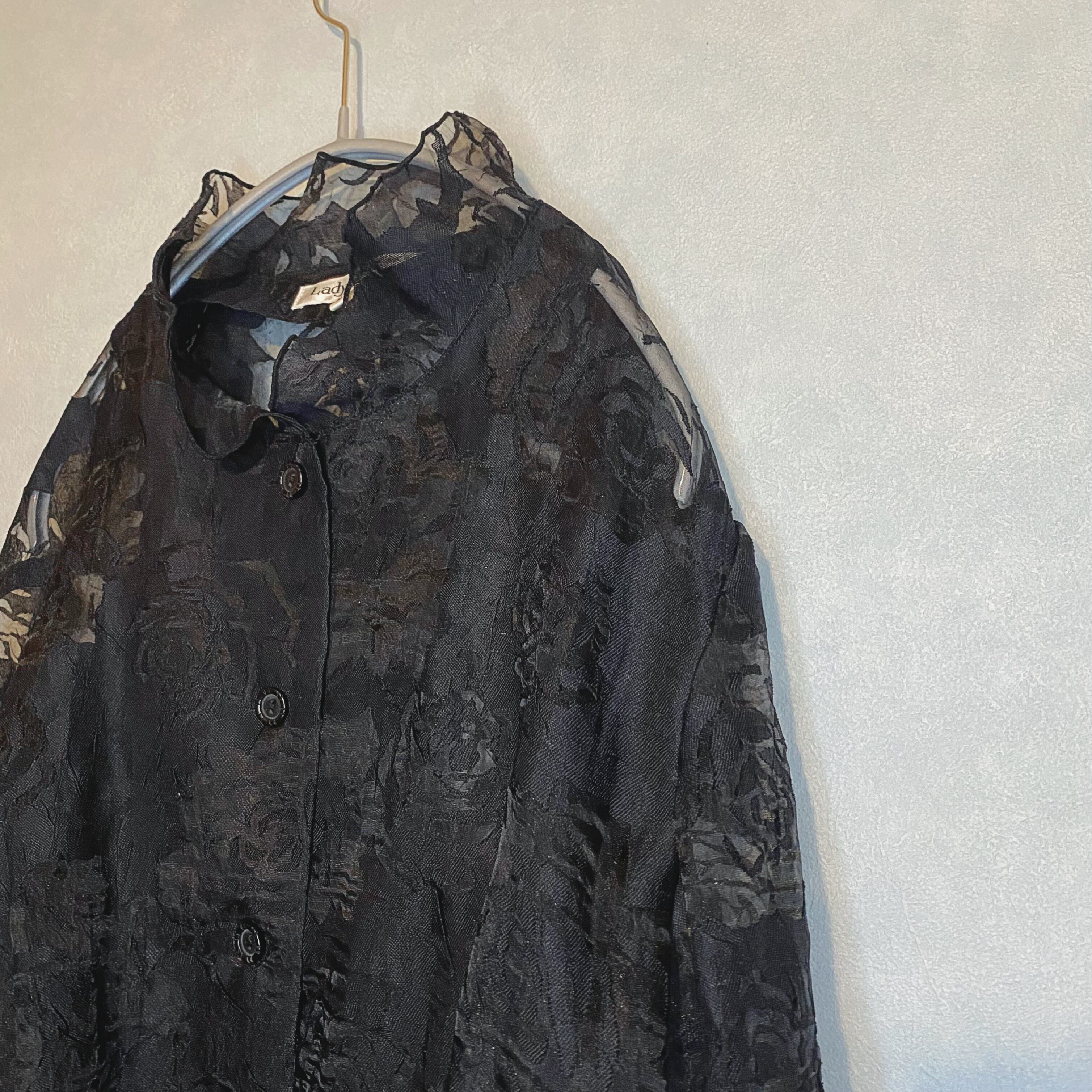 古着 レトロ アンティーク 薔薇柄 フリル シアーブラウス