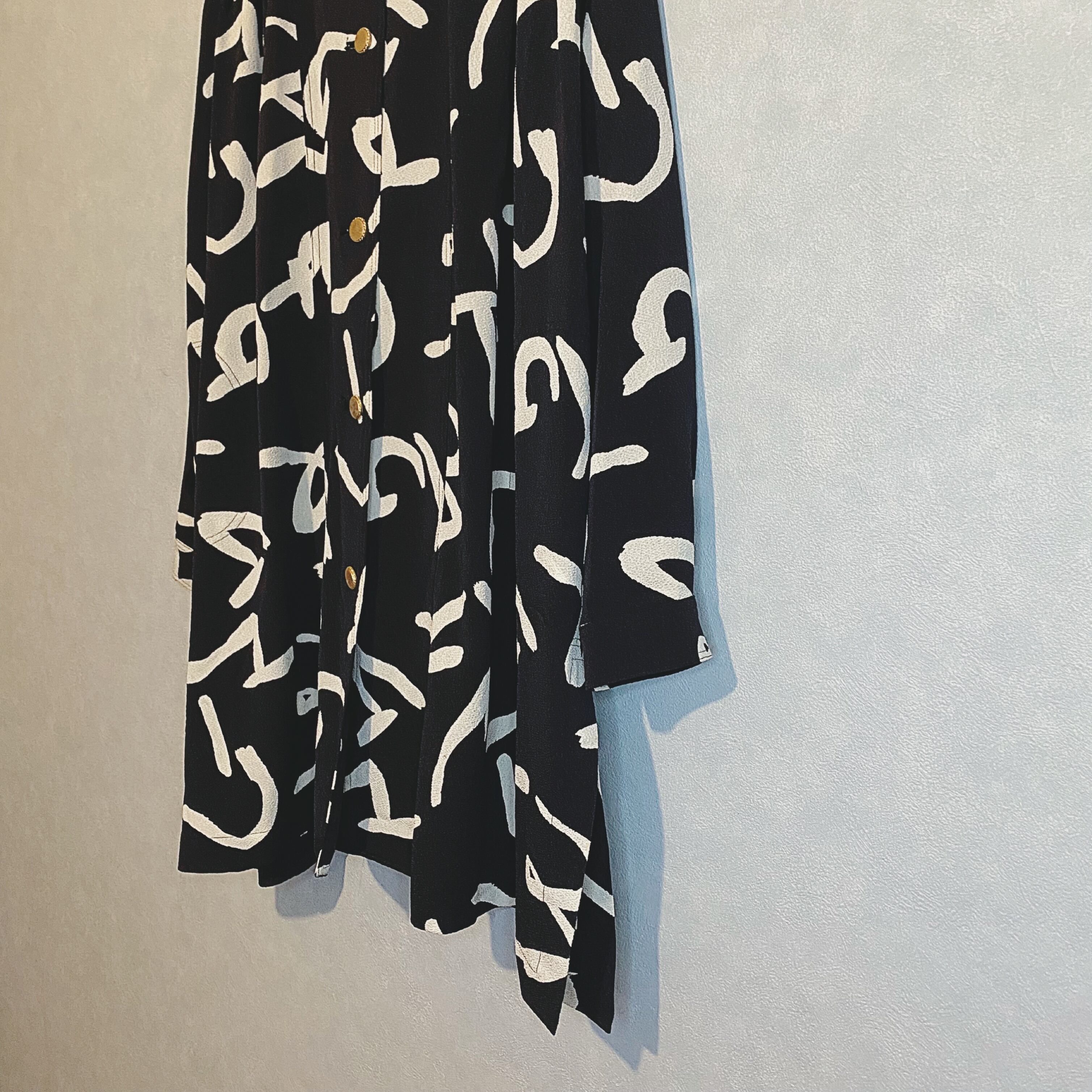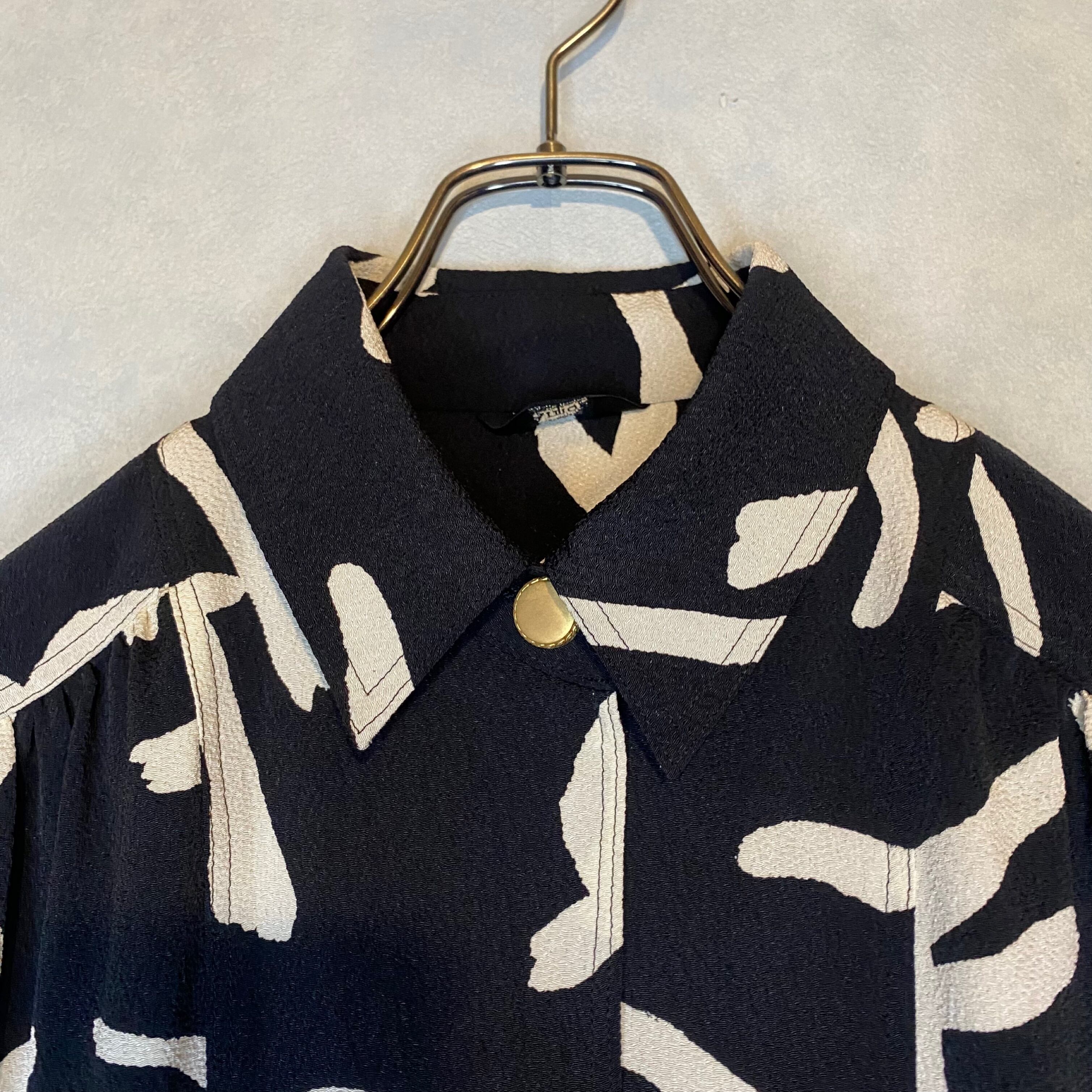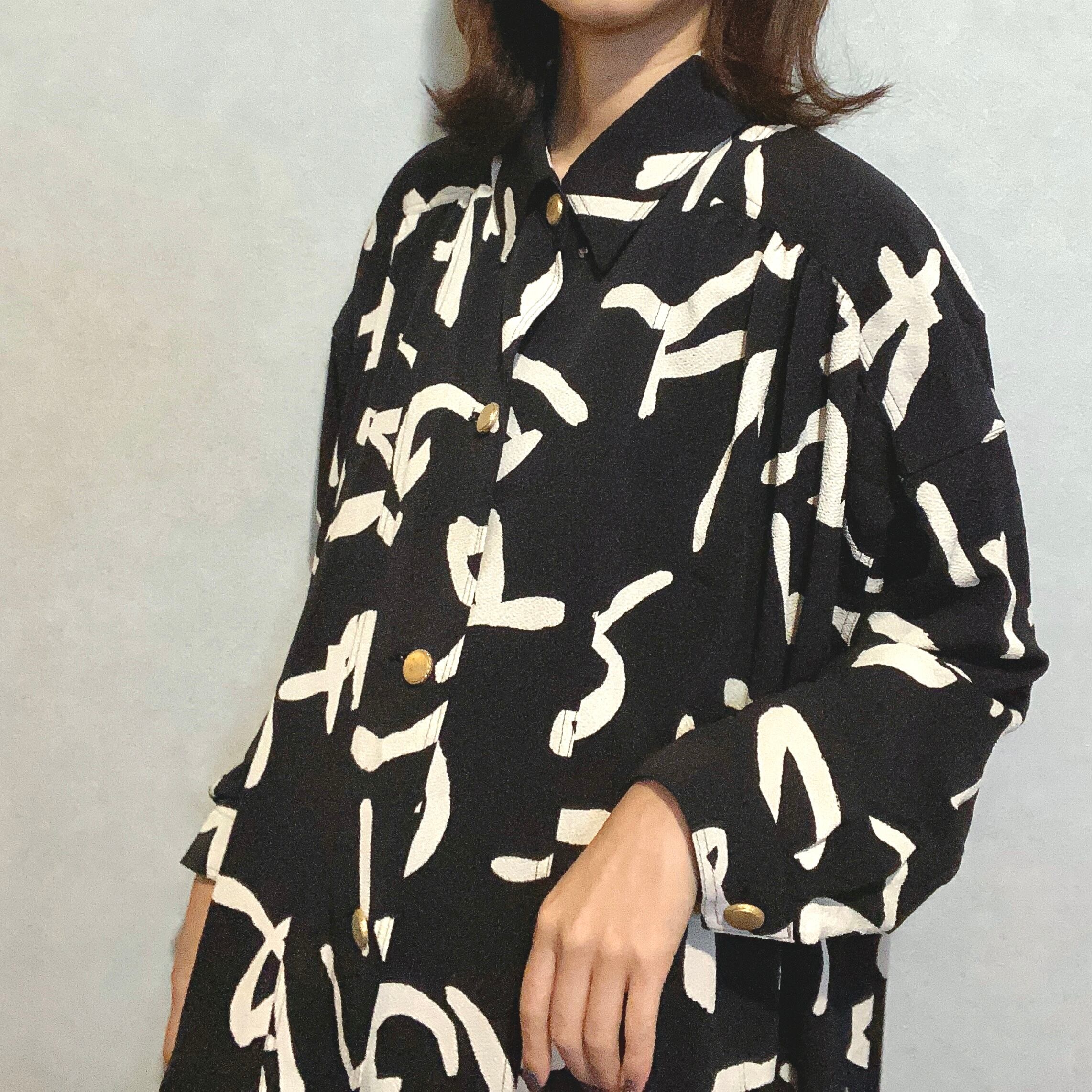 古着 レトロ ヴィンテージ ビッグシャツ ワンピース 柄シャツ 金ボタン
