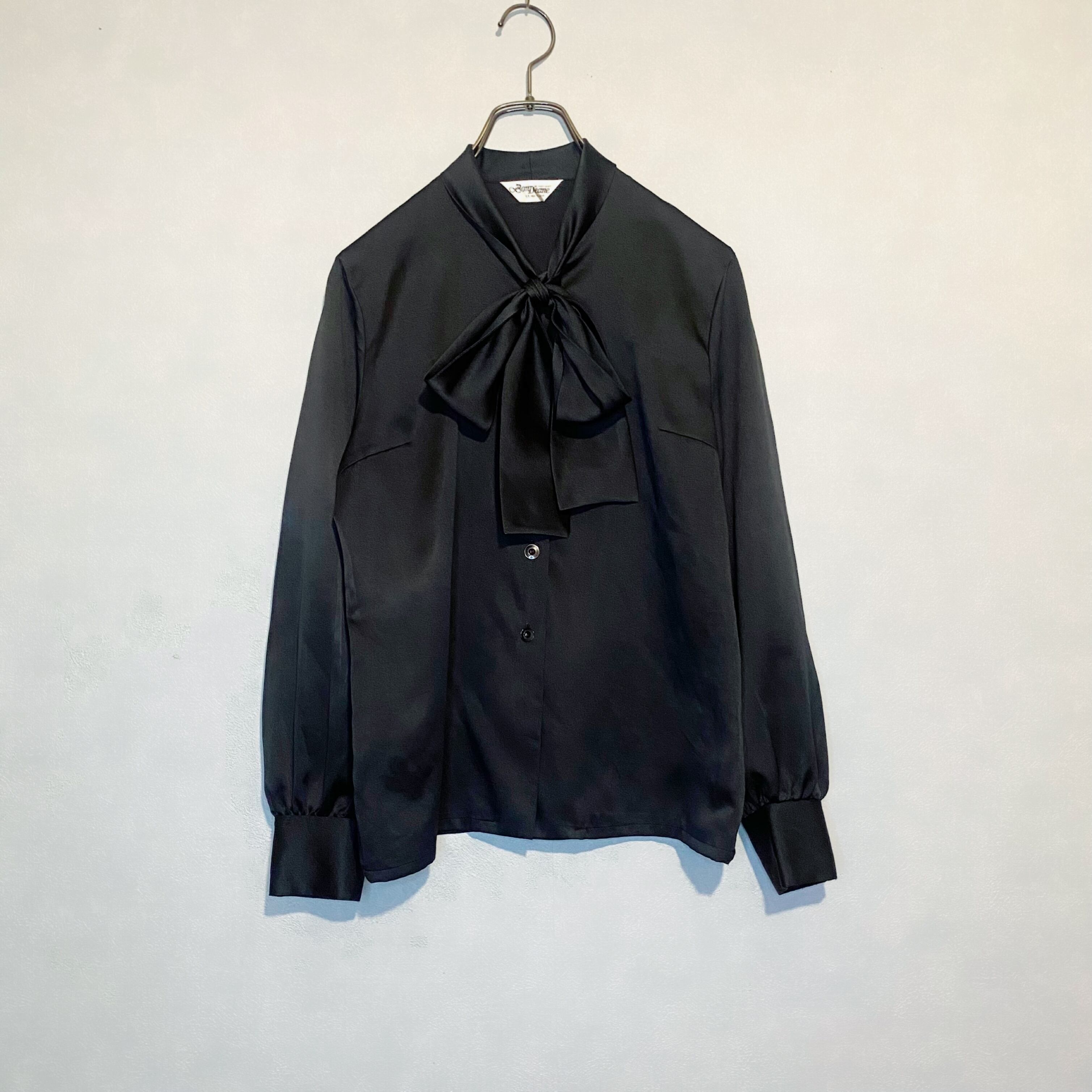 古着 ヴィンテージ アンティーク レトロ ビッグリボン ブラック ブラウス