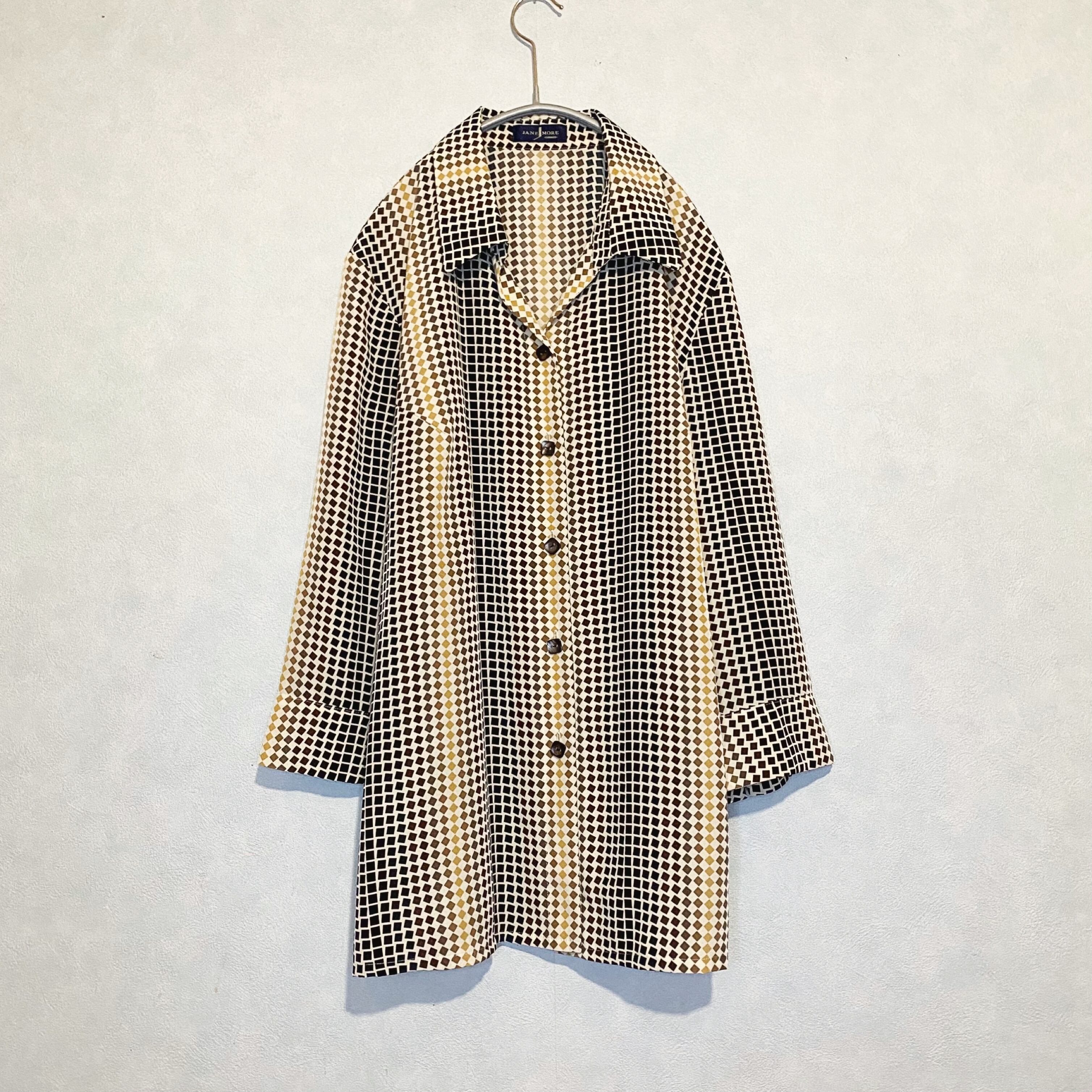 古着 ヴィンテージ 昭和レトロ 70s 開襟 幾何学 柄シャツ