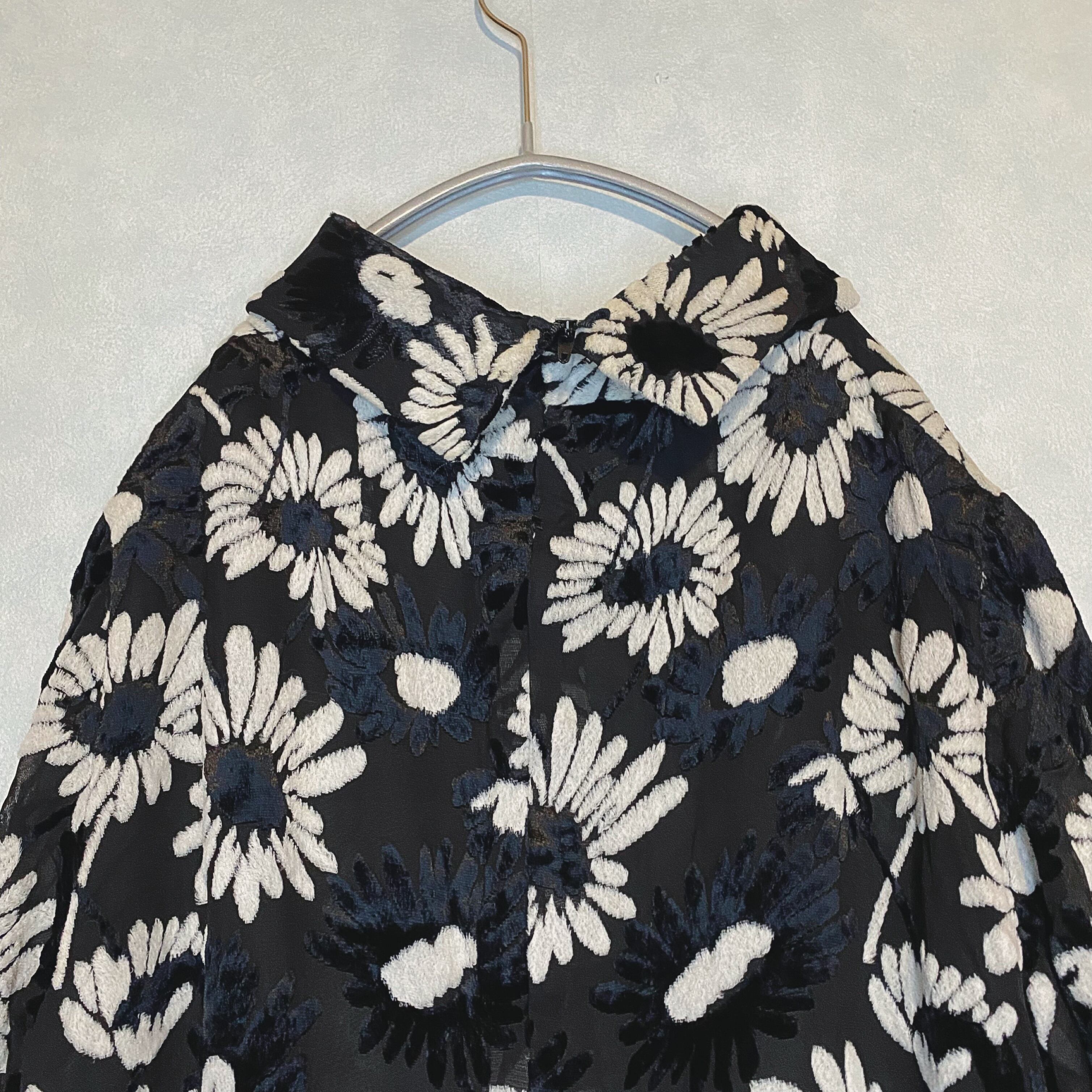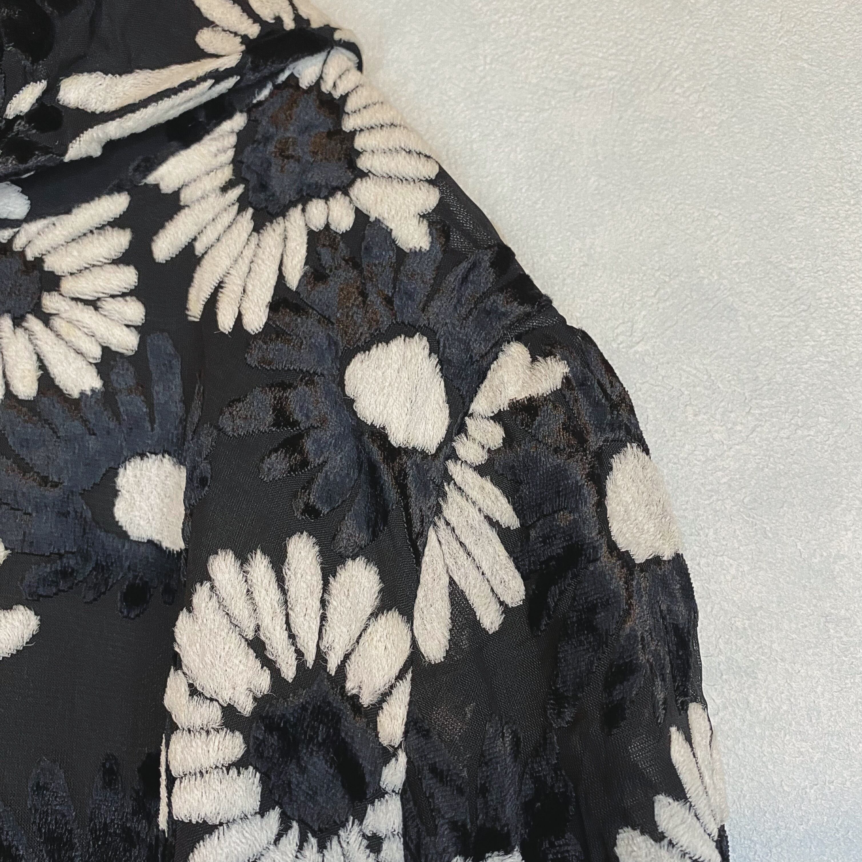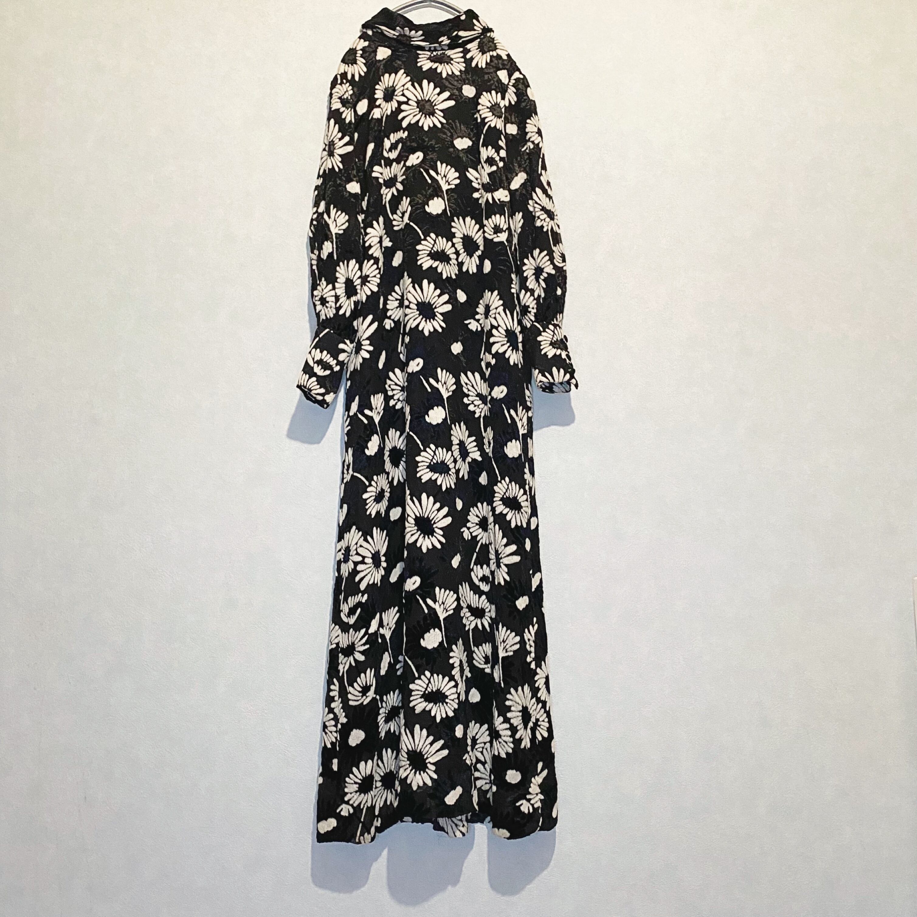 古着 ヴィンテージ レトロ パイル刺繍 花柄 ハイネック マキシ ワンピース