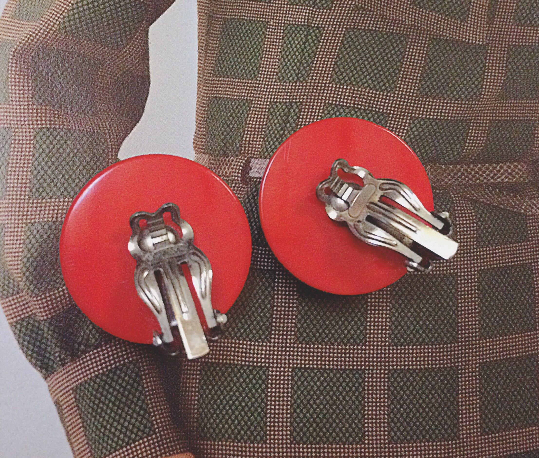 コーディネートの差し色に真っ赤なイヤリングが映えます。
