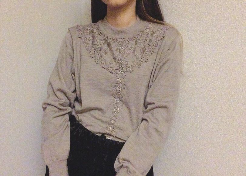 レース刺繍 ニット カットソー
